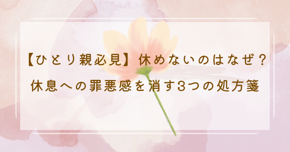 この記事では、元女性相談員として、たくさんのひとり親の悩みに向き合ってきた私が、「休むことへの罪悪感」を根本からなくし、「疲れた」と心から自分を認めてリラックスするための3つの「心のルール」をご紹介します。