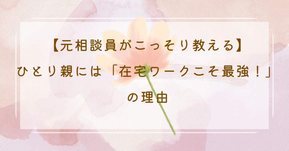 この記事では、元相談員として多くのケースを見てきた経験から、在宅ワークがひとり親の生活を守る「最強の働き方」だと断言できる3つの理由を、わかりやすく解説していきますね。